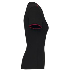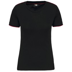 65% polyester / 35% coton peigné. Tissu jersey. Lavable à 60°C. Traitement antiboulochage. Encolure ronde avec élasthanne. Passepoil contrasté intérieur col et épaules. Finition bas de manches en bord-côte avec liseré contrasté. Finition double aiguille au bas de vêtement. Idéal pour une utilisation quotidienne.