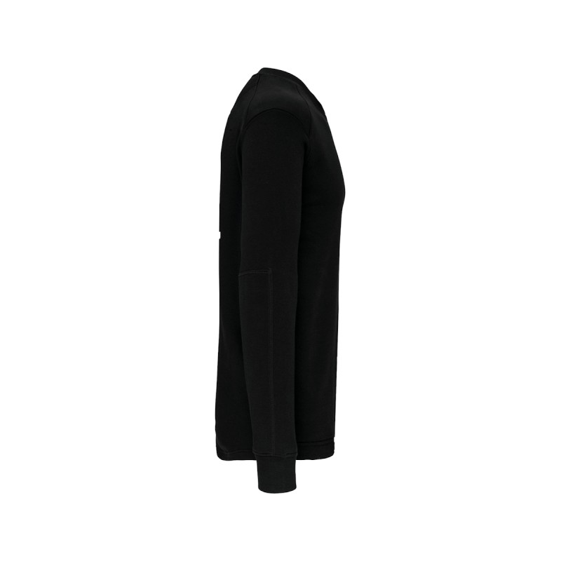 80% coton / 20% polyester. Molleton 3 fils avec traitement LSF (Low Shrinckage Fleece). Lavable à 60°C. Col rond et bas de manches en bord-côte. Poche zippée invisible côté droit. Renforts sur épaules et coudes pour plus de résistance. Porte-stylo sur manche gauche. Finition demi-lune au dos. Lien d'accrochage dans le col. Finition double aiguille au bas du vêtement et dos rallongé pour plus de confort.