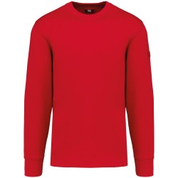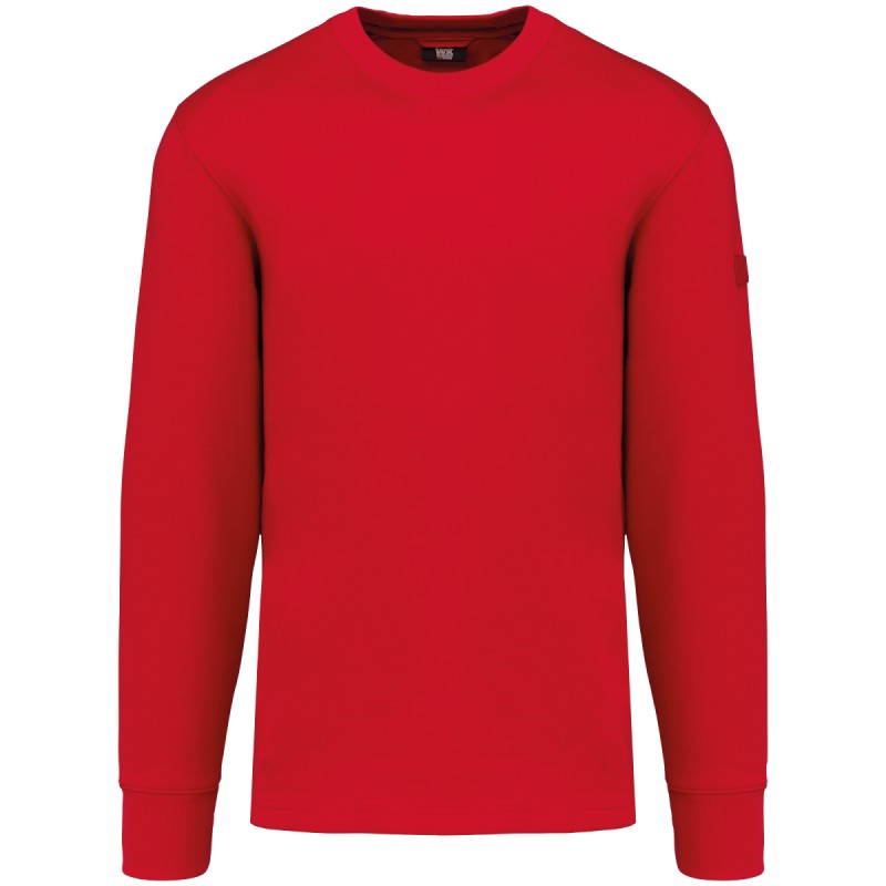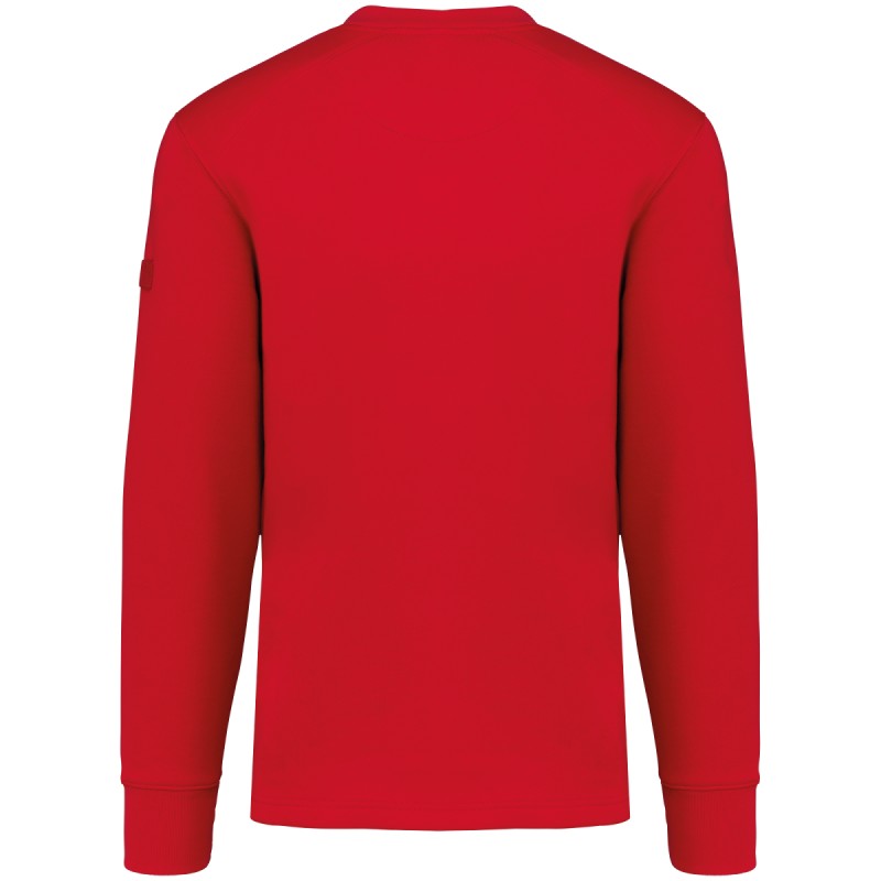 80% coton / 20% polyester. Molleton 3 fils avec traitement LSF (Low Shrinckage Fleece). Lavable à 60°C. Col rond et bas de manches en bord-côte. Poche zippée invisible côté droit. Renforts sur épaules et coudes pour plus de résistance. Porte-stylo sur manche gauche. Finition demi-lune au dos. Lien d'accrochage dans le col. Finition double aiguille au bas du vêtement et dos rallongé pour plus de confort.