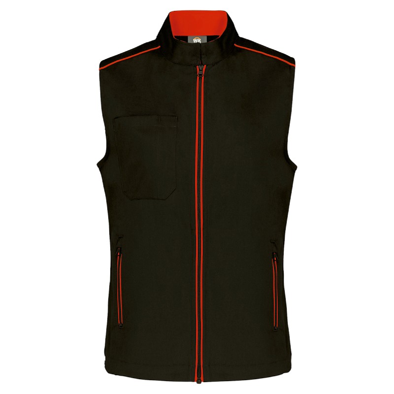 65% polyester / 35% coton. Lavable 60°C. 2 poches zippées côtés. 1 poche poitrine ouverte à droite avec porte-stylo. 1 étiquette nom à l'intérieur. Fermeture zippée avant et poches contrastée. Passepoil contrasté sur épaules. Intérieur du col contrasté avec lien d'accrochage. 2 fentes d'aisance au dos. Idéal pour une utilisation quotidienne.