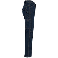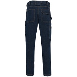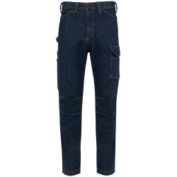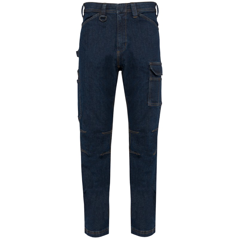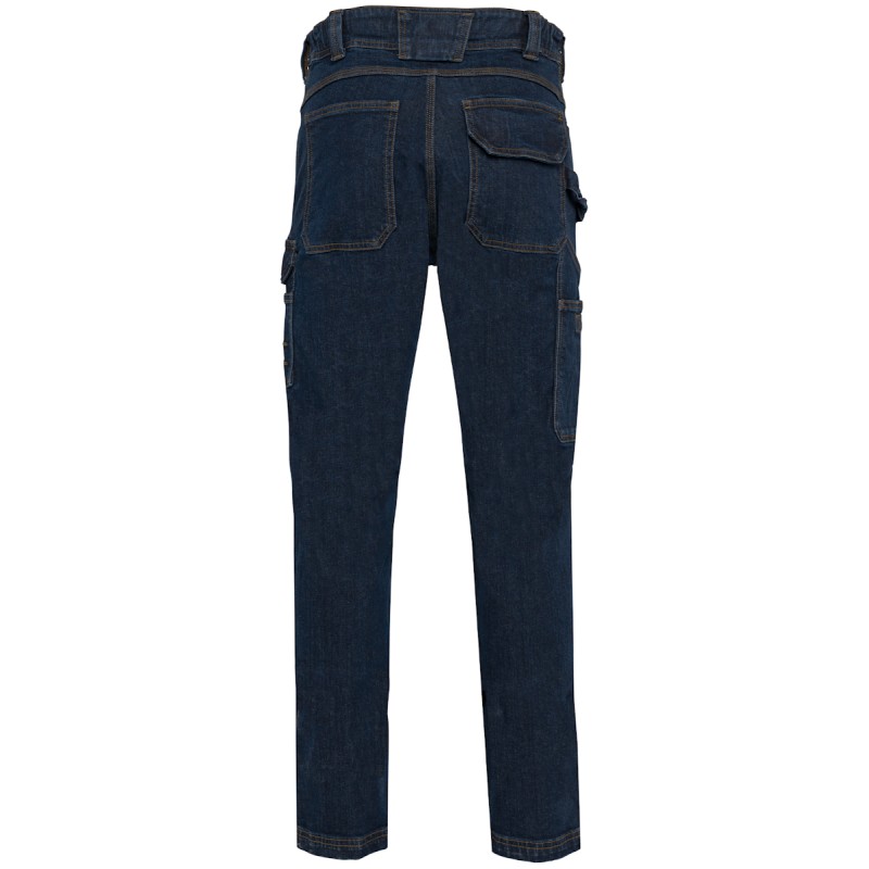 99% coton / 1% élasthanne. Toile denim. Lavable à 60°C. Coupe ajustée. Fermeture boutonnée avec cache-boutons et zip métal. Devant : 2 poches ouverture en biais. Côté gauche : poche couture renforcée à rabat avec fermeture auto-agrippante + sur-poche à 3 compartiments dont 1 avec passe-stylo. Côté droit : passe-marteau, poche mètre + surpoche avec fermeture auto-agrippante. Dos : 2 poches plaquées avec coutures renforcées dont une à rabat avec bande auto-agrippante. Ceinture arrondie dans le dos avec large bande élastique intérieure antiglisse pour un maintien optimal. Boucle orange intérieur milieu dos. Passants avec coutures renforcées dont un large milieu dos et 1 anneau plastique devant. Pinces d'aisance aux genoux pour plus de confort. Soufflet renforcé à l'entrejambe pour plus de résistance et une parfaite liberté de mouvement. Triple surpiqûres coutures côtés, intérieur jambe et fourche dos. Finition double aiguille au bas de jambe. Etiquette de marque Tear Away.