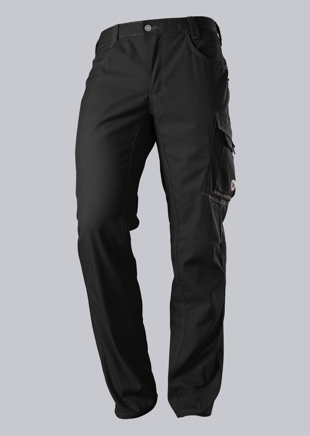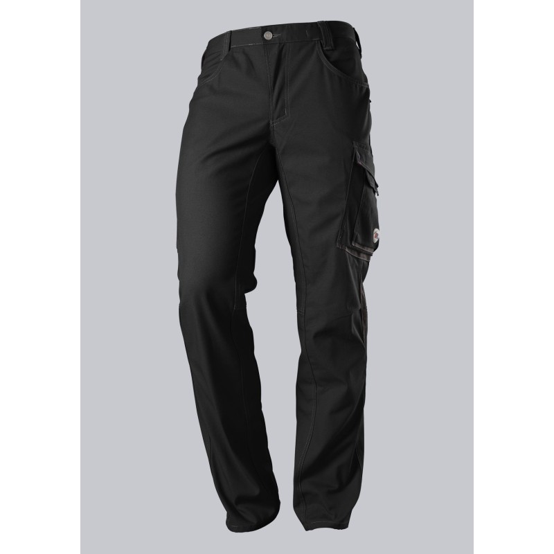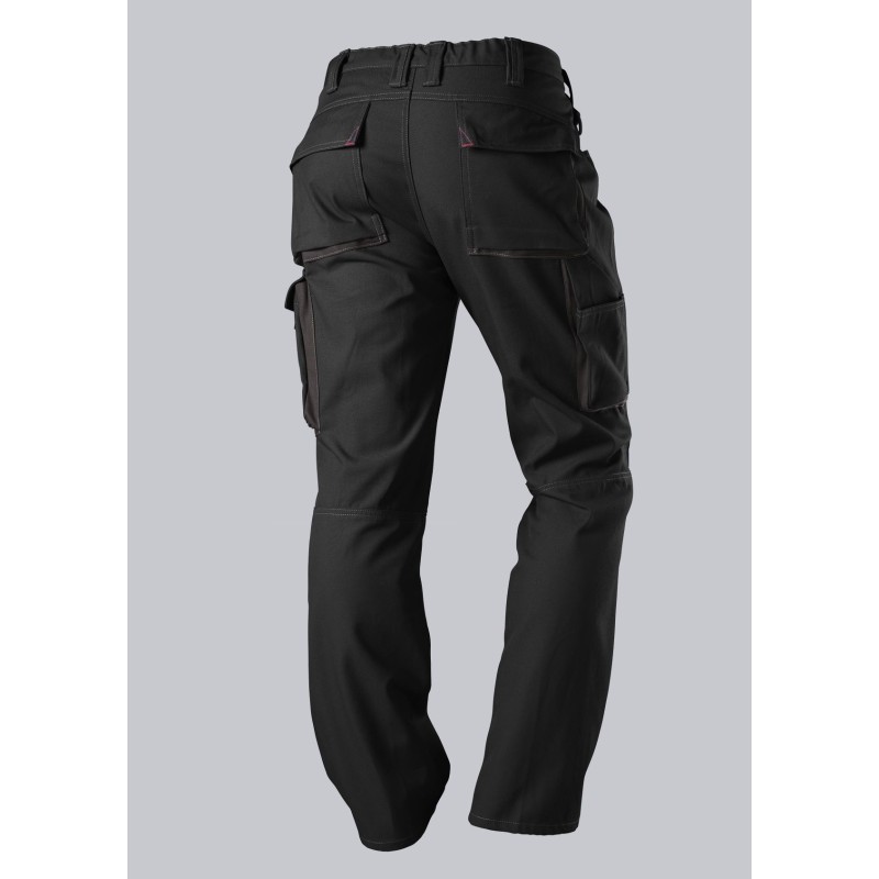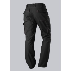 2 poches latérales, 2 poches revolver fermées par rabat et bouton-pression, 1 grande poche cuisse avec poche smartphone plaquée, double poche mètre.