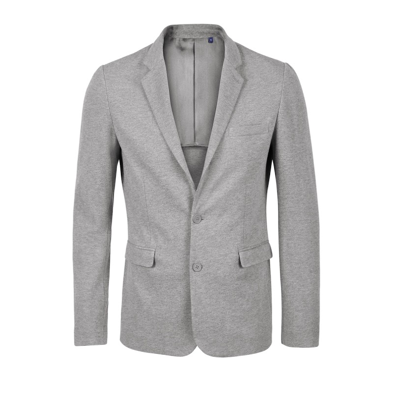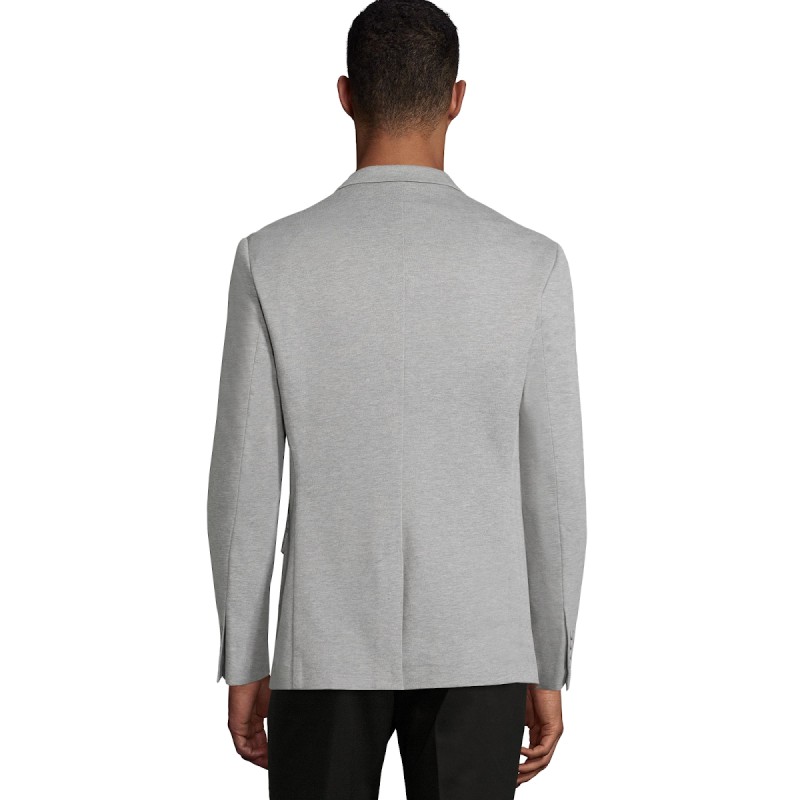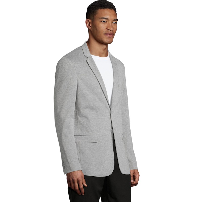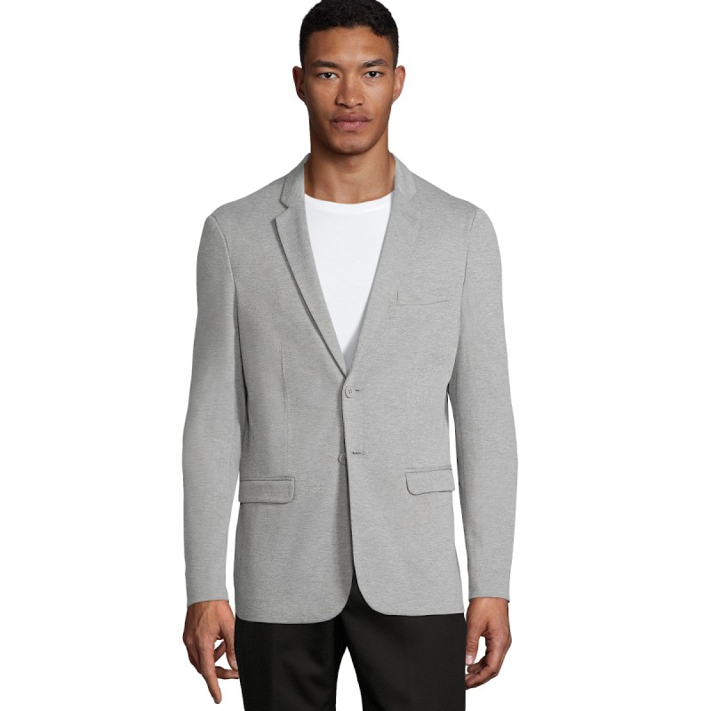 Ce blazer allie le chic formel de la veste de costume au confort de la maille piquée.