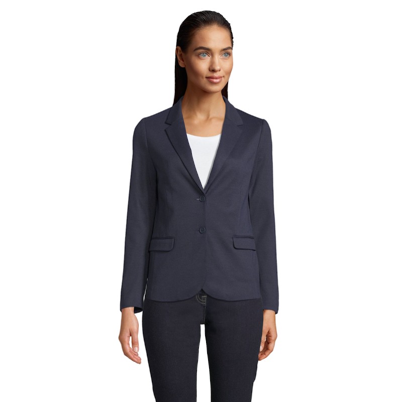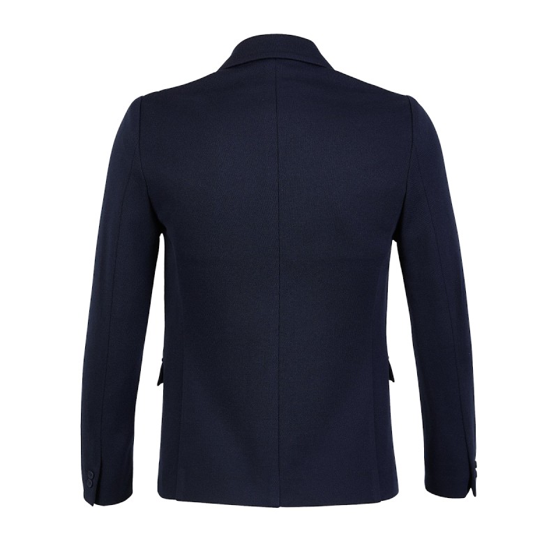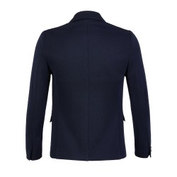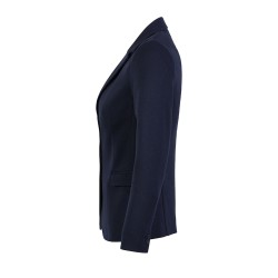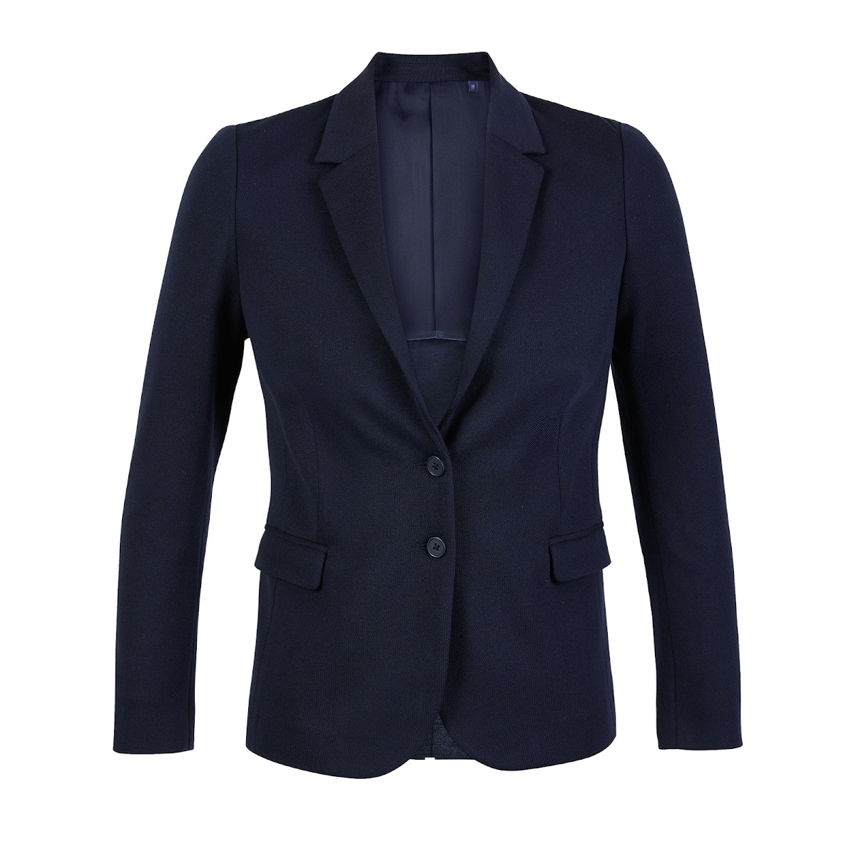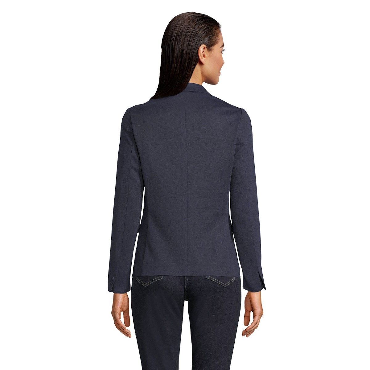 Ce blazer allie le chic formel de la veste de costume au confort de la maille piquée.