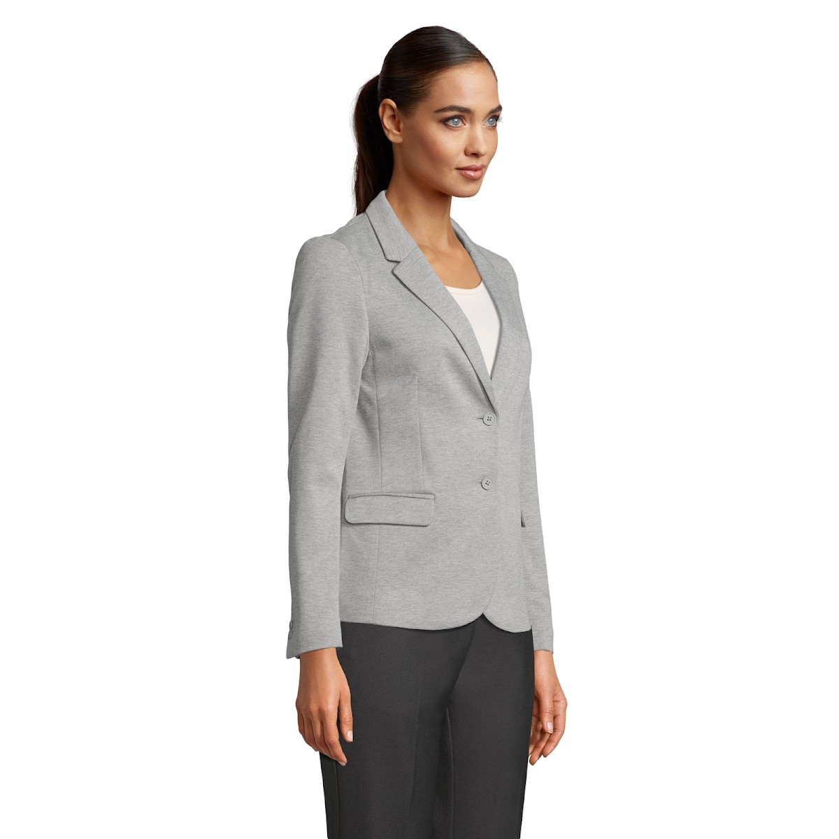 Ce blazer allie le chic formel de la veste de costume au confort de la maille piquée.