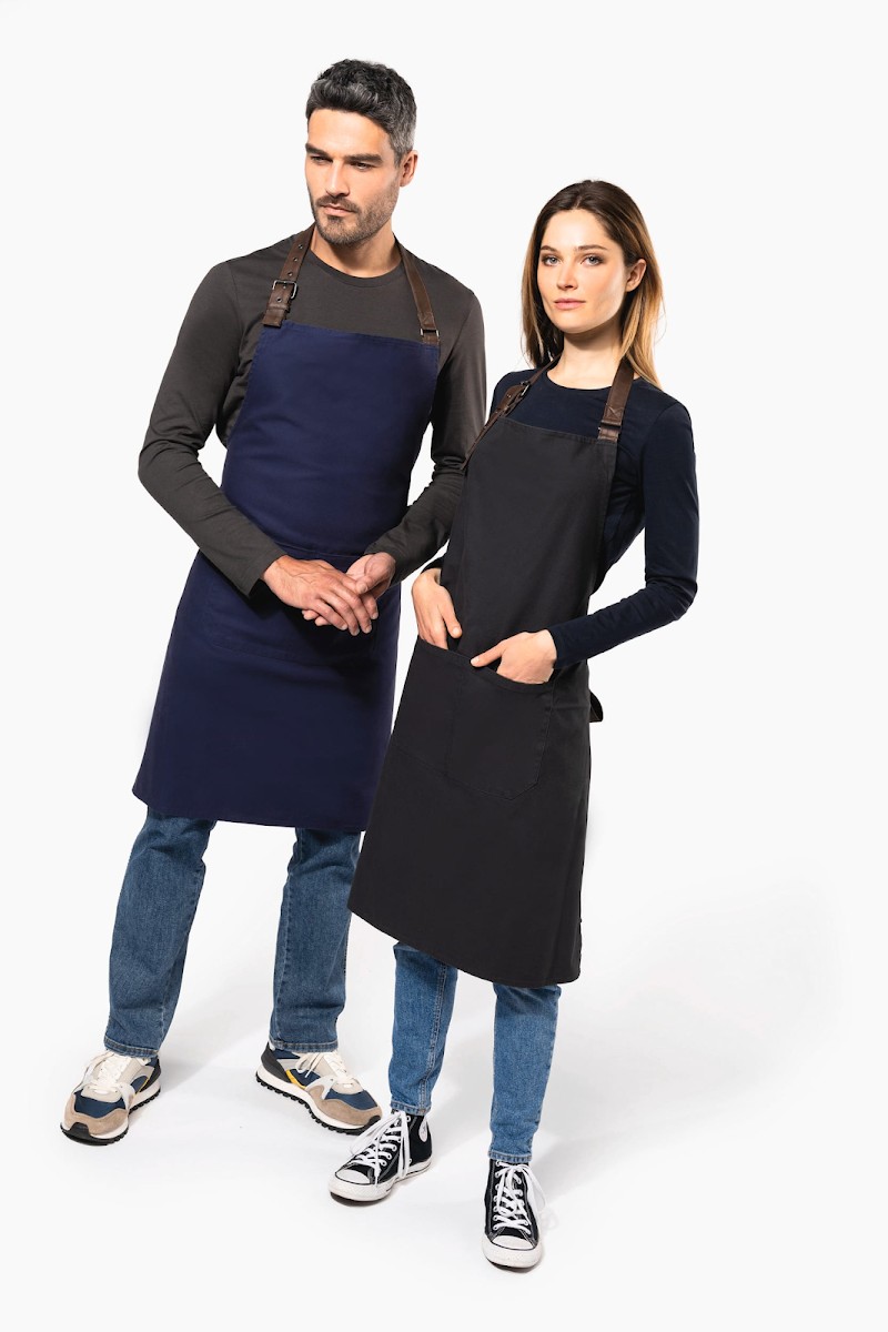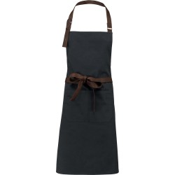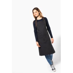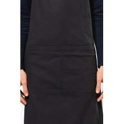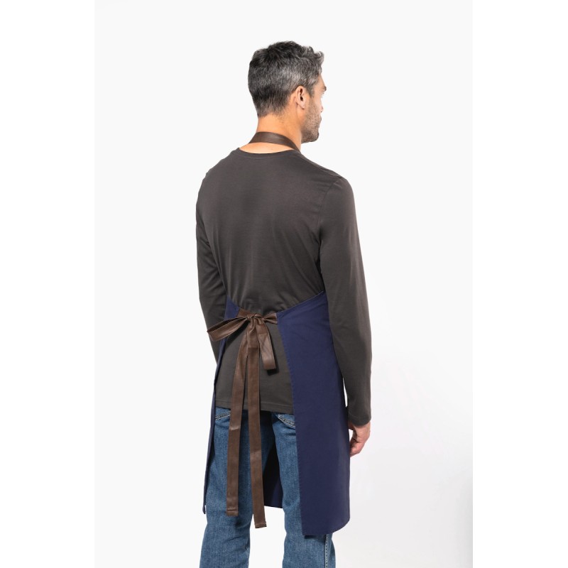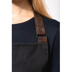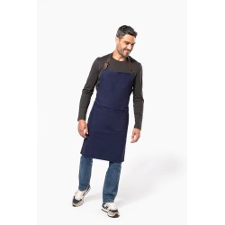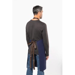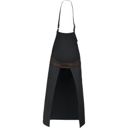 100% coton. Tissu canvas. Boucle de réglage en métal avec œillets au niveau du cou pour ajuster la longueur du tablier. Sangles d'attache en tissu fantaisie enduit. Grande poche devant en deux compartiments. Dimensions : H 90 cm - L 76 cm. Poche : H 20 cm - L 31,5 cm. Ce produit a subi un traitement spécial et présente un aspect volontairement vieilli. Ce procédé de fabrication implique des variations de couleurs d'un produit à l'autre et rend chaque pièce unique.