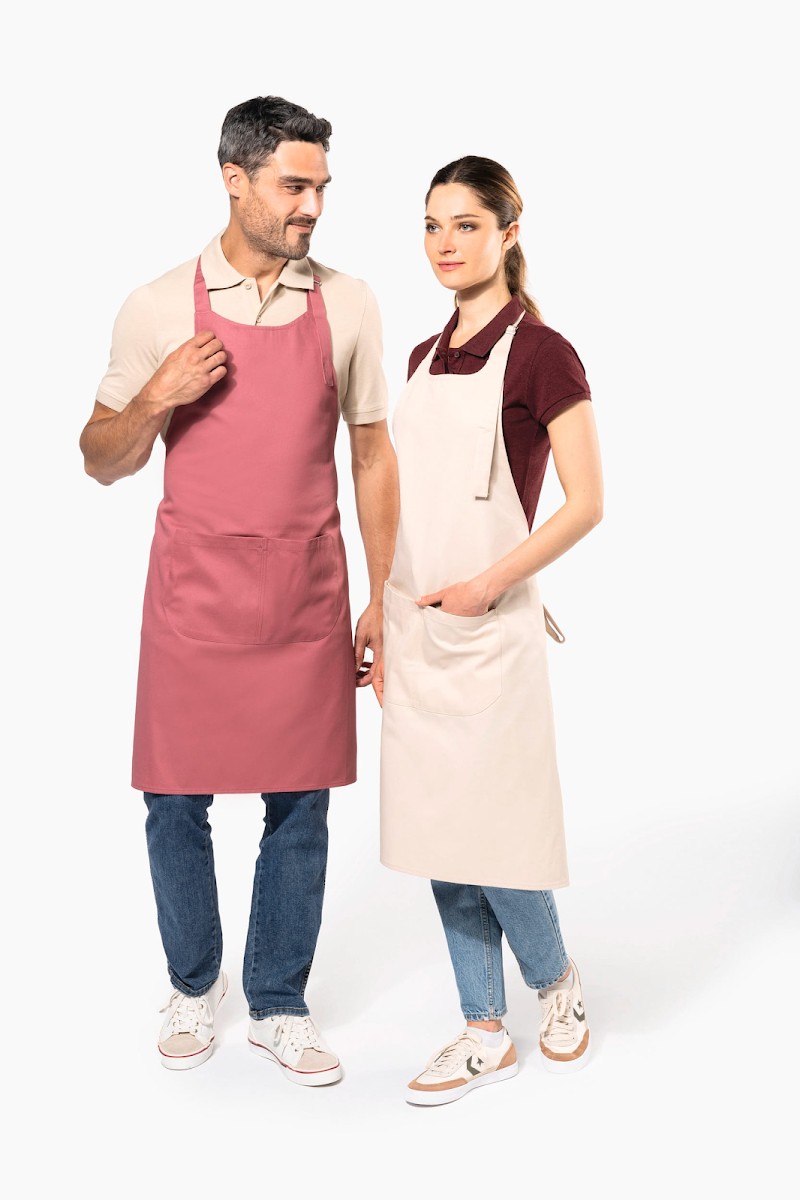 100% coton. Lavage domestique 60°C. Boucle de réglage en métal au niveau du cou pour ajuster la longueur du tablier. Grande poche avant en deux compartiments. Dimensions : H 90 cm - L 76 cm. Poche : H 20 cm - L 31,5 cm. Couleur Denim : ce produit a subi un traitement spécial et présente un aspect volontairement vieilli. Ce procédé de fabrication implique des variations de couleurs d'un produit à l'autre et rend chaque pièce unique.