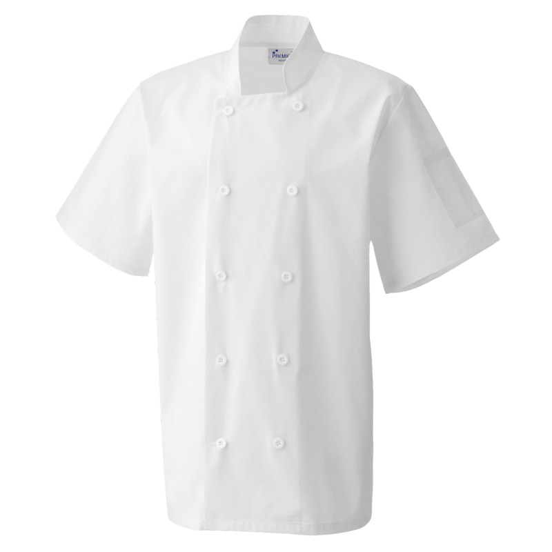 Manches courtes et fermeture portefeuille à 10 boutonnières. Boutons en résine de grande qualité et durables. Poche à crayon sur la manche gauche. Coupe unisexe.