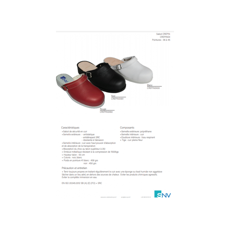 Tige cuir, semelle de propreté intérieur en cuir véritable, semelle extérieure en polyuréthane antidérapant SRC et résistance à l'abrasion
