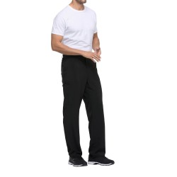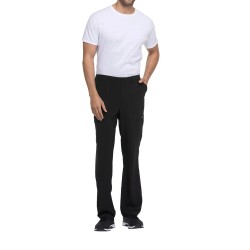 95% polyester / 5% élasthanne. Coupe masculine. Ceinture élastique au dos avec cordon intérieur. Braguette zippée avec fermeture à bouton. Cinq passants de ceinture. Six poches : deux poches frontales plaquées, deux poches cargo, deux poches arrière. Bande en sergé utilitaire boucle d'instrument.