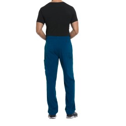 95% polyester / 5% élasthanne. Coupe masculine. Ceinture élastique au dos avec cordon intérieur. Braguette zippée avec fermeture à bouton. Cinq passants de ceinture. Six poches : deux poches frontales plaquées, deux poches cargo, deux poches arrière. Bande en sergé utilitaire boucle d'instrument.