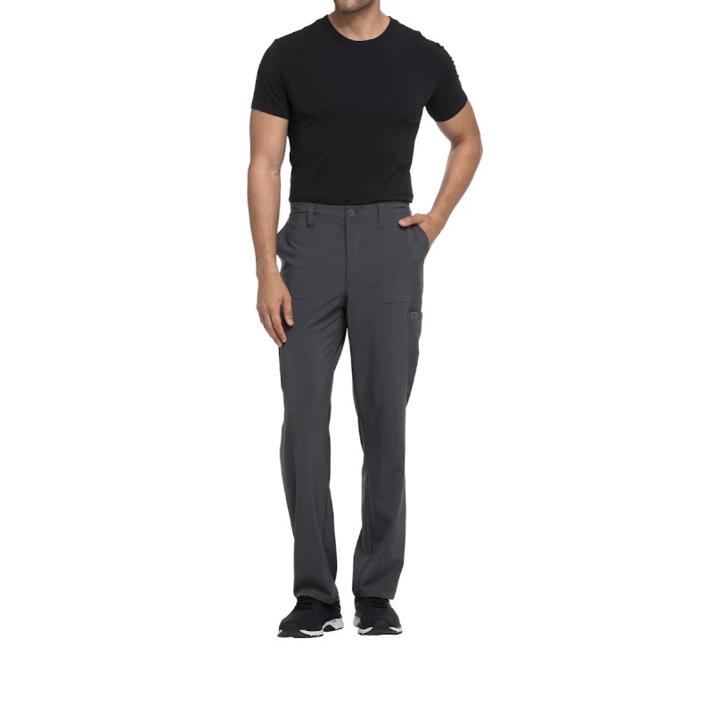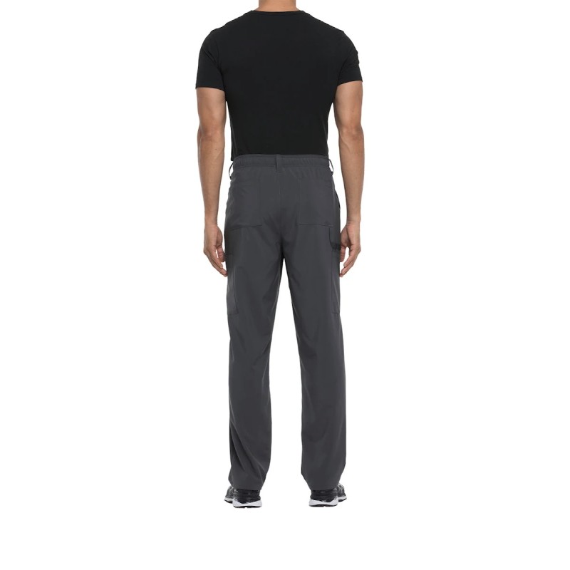 95% polyester / 5% élasthanne. Coupe masculine. Ceinture élastique au dos avec cordon intérieur. Braguette zippée avec fermeture à bouton. Cinq passants de ceinture. Six poches : deux poches frontales plaquées, deux poches cargo, deux poches arrière. Bande en sergé utilitaire boucle d'instrument.