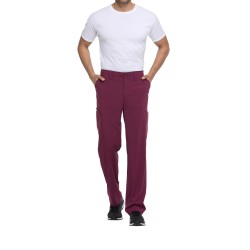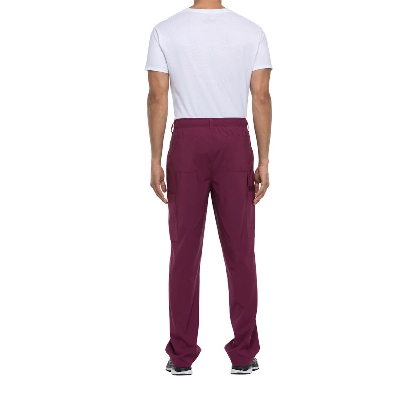 95% polyester / 5% élasthanne. Coupe masculine. Ceinture élastique au dos avec cordon intérieur. Braguette zippée avec fermeture à bouton. Cinq passants de ceinture. Six poches : deux poches frontales plaquées, deux poches cargo, deux poches arrière. Bande en sergé utilitaire boucle d'instrument.