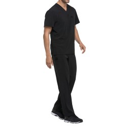 95% polyester / 5% élasthanne. Coupe masculine. Quatre poches : poches plaquées, poche poitrine avec fente pour stylo, poche accessoire. Boucles d'instruments en ruban sergé utilitaire sur la poche droite. Etiquette tissée signature ton sur ton. Bande sergé avec logo signature à l'intérieur du col. Ventilations latérales.