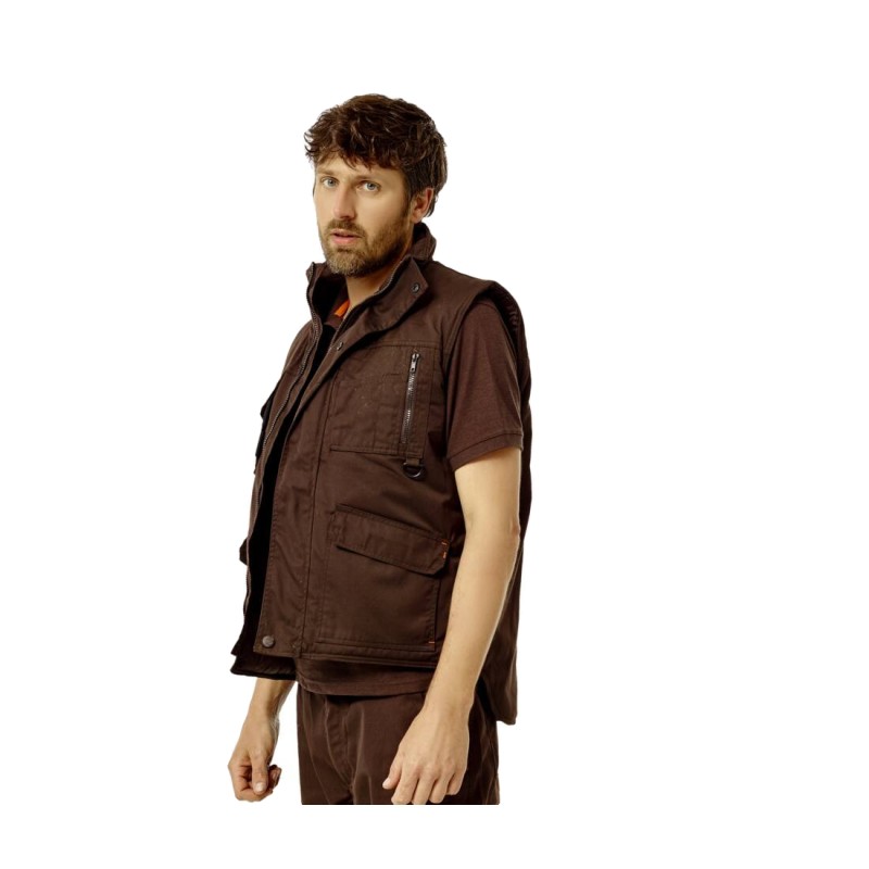 Gilet déperlant multi-poches et col en polaire. 12 poches extérieures. Accès pour personnalisation. Gamme Essentials.
