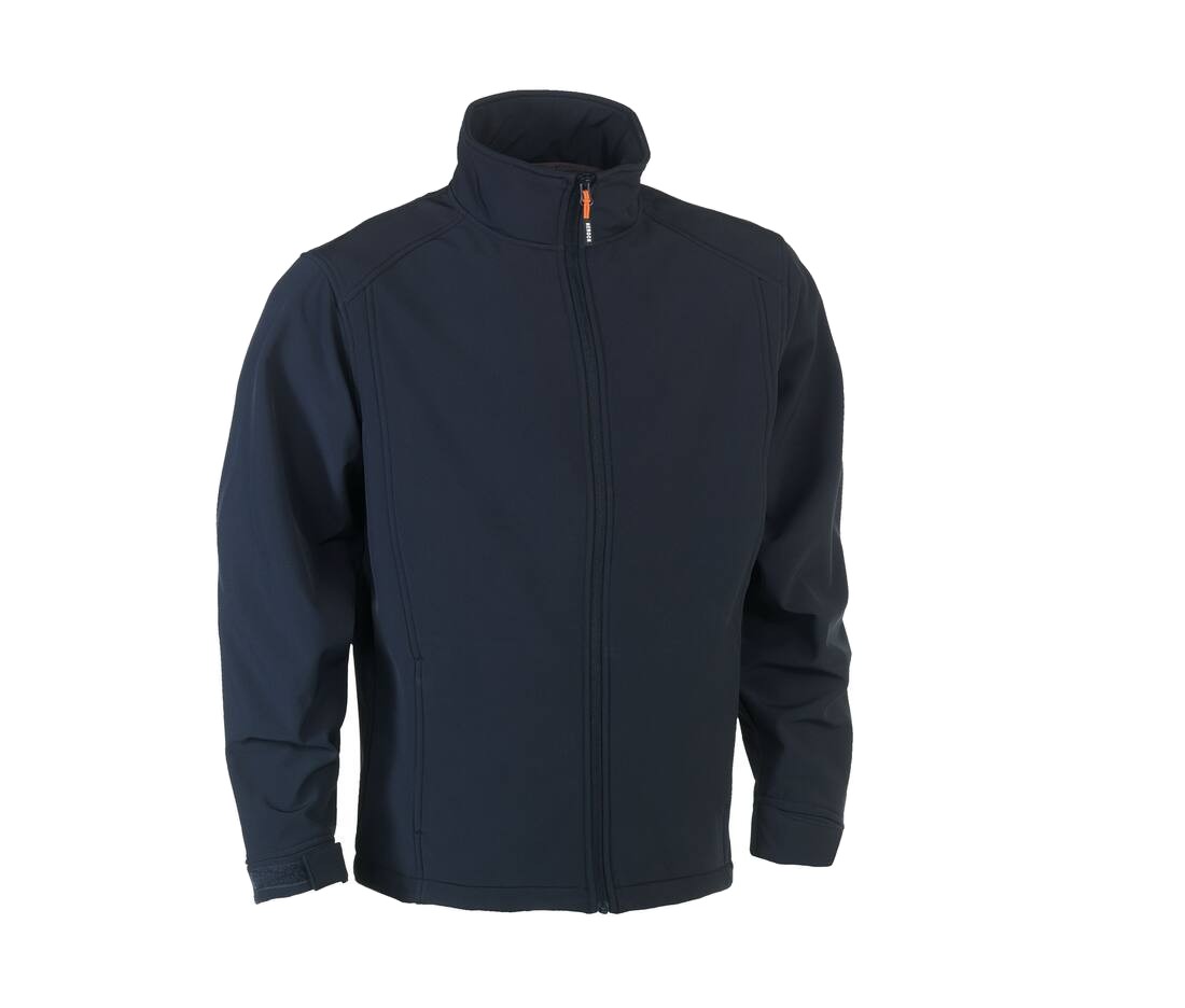 Veste Softshell respirante, déperlante et coupe-vent. Respirante 500 mvp. Imperméable 5000 mm. 2 poches latérales.