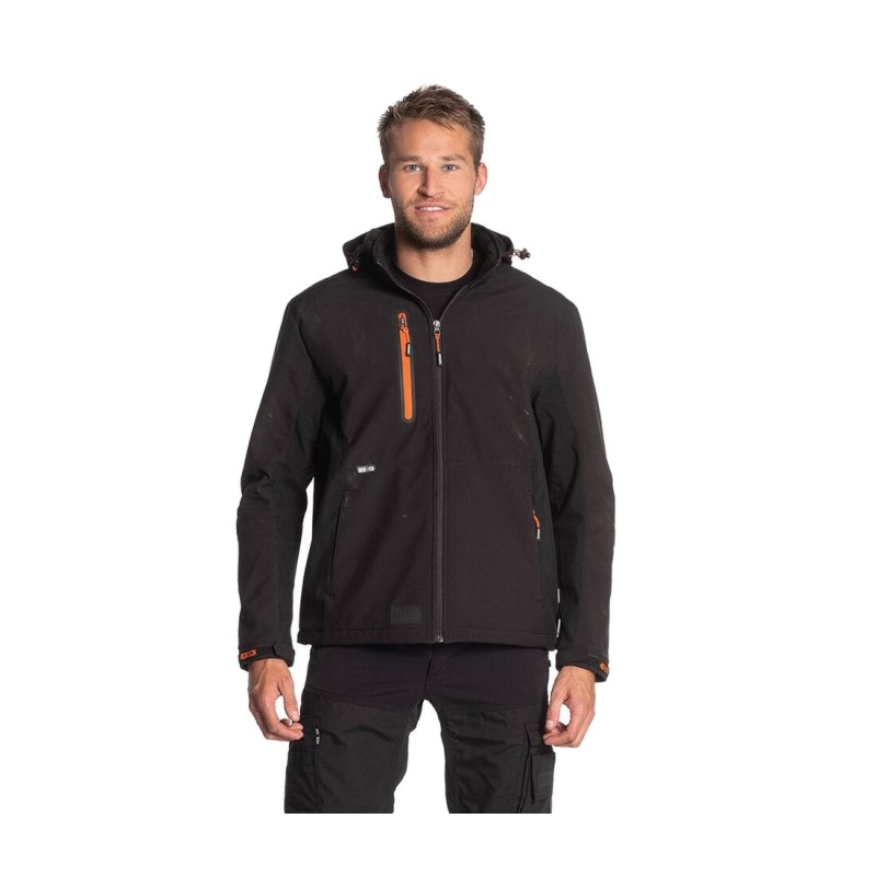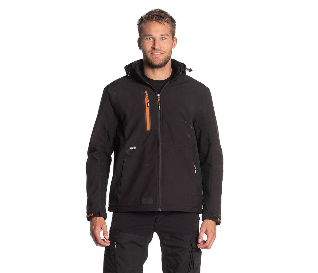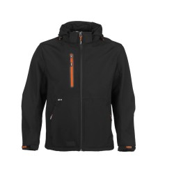Veste Softshell respirante (3000 mvp), imperméable (5000 mm) et coupe-vent. Multi-poches. Capuche amovible.