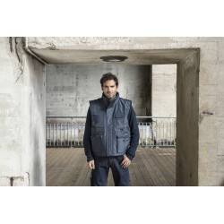 Bodywarmer coupe-vent multi-poches avec enduction imperméable. 10 poches extérieures. Dos plus long et Velcro® pour ajustement de la taille.