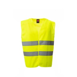 Gilet haute visibilité avec bandes rétroréfléchissantes, coutures à deux aiguilles, fermeture par velcro, entièrement bordé.