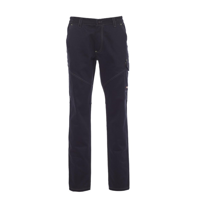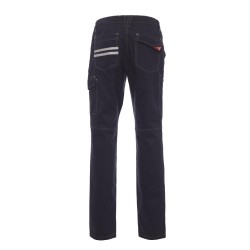Pantalon unisexe, d'hiver, élastiques latéraux et passants à la taille, fermeture par zip et bouton en plastique. Deux poches de coupe classique sur le devant, une poche latérale LOCK SYSTEM, un porte-mètre, deux poches arrière : une ouverte et une avec rabat et velcro, inserts et surpiqûres en contraste, bandes réfléchissantes sur poche arrière. Coutures triple piqûre. Surpiqûres et coutures ton sur ton, avec baguettes en contraste jaune fluorescent, pour la couleur Total Noir.