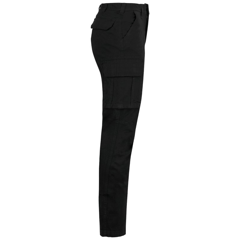98% coton / 2% élasthanne. Tissu sergé finition peau de pêche. Fermeture zippée et bouton métal caché. 2 poches devant. 2 poches côté à soufflet avec rabat. 2 poches arrière avec rabat. Ce produit a subi un traitement spécial et présente un aspect volontairement vieilli. Ce procédé de fabrication implique des variations de couleurs d'un produit à l'autre et rend chaque pièce unique.