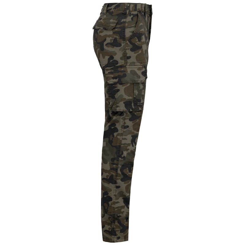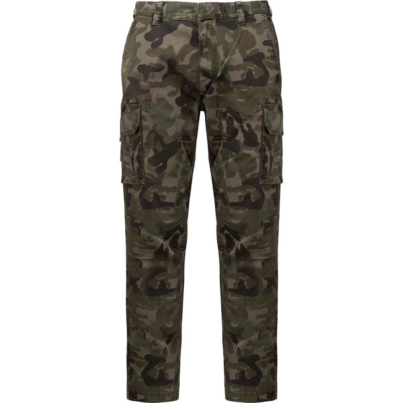 98% coton / 2% élasthanne. Tissu sergé finition peau de pêche. Fermeture zippée et bouton métal caché. 2 poches devant. 2 poches côté à soufflet avec rabat. 2 poches arrière avec rabat. Ce produit a subi un traitement spécial et présente un aspect volontairement vieilli. Ce procédé de fabrication implique des variations de couleurs d'un produit à l'autre et rend chaque pièce unique.