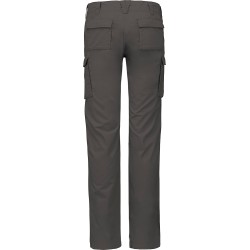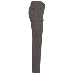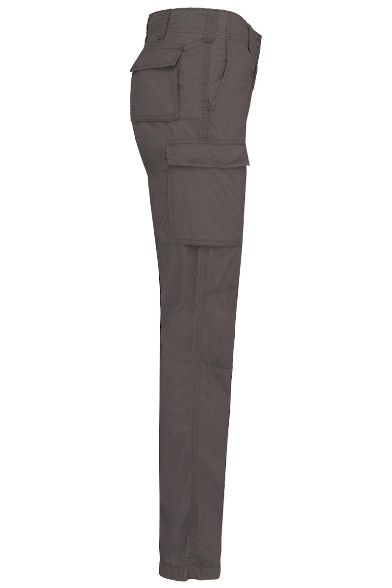 100% coton popeline. Tissu lavé pour un aspect souple et confortable. Intérieur ceinture contrasté avec cordon de serrage. Fermeture zippée et bouton pression. 2 poches italiennes devant. 2 poches à soufflet avec rabat et bouton pression à l'arrière et côtés. Empiècements genoux.