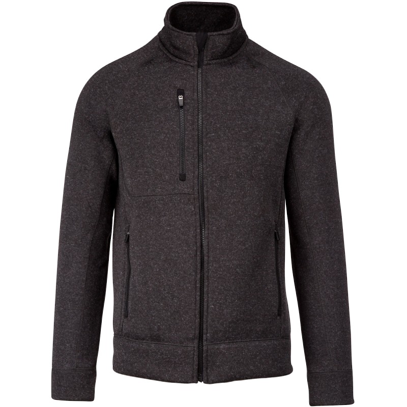 Tricot intérieur gratté 100% polyester. Manches raglan. Fermeture zippée. 2 poches zippées contrastées devant et 1 poche poitrine zippée contrastée. Point de recouvrement sur les découpes. Coupe et matière très confortables.