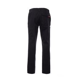 Pantalon avec passants et élastique à la taille, fermeture par zip et bouton. Deux poches de coupe classique sur le devant, porte-mètre latéral côté droit, une poche arrière avec rabat et velcro. Coutures triple piqûre.