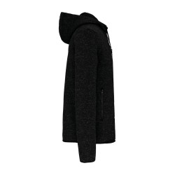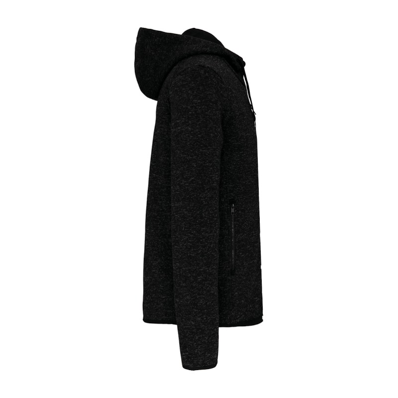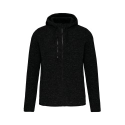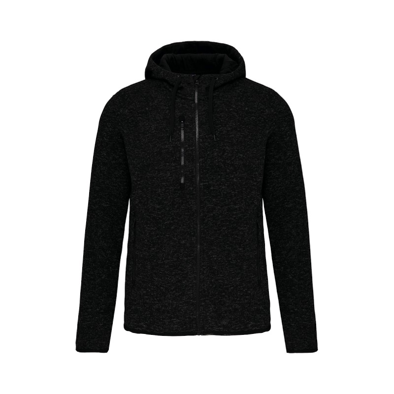 Tricot intérieur gratté 100% polyester. 2 poches devant zippées contrastées et 1 poche poitrine zippée contrastée. Capuche doublure contrastée jersey 100% coton avec cordon de serrage plat contrasté. Bas de manches et de vêtement avec finition biais contrasté élastiqué. Point de recouvrement sur les découpes.