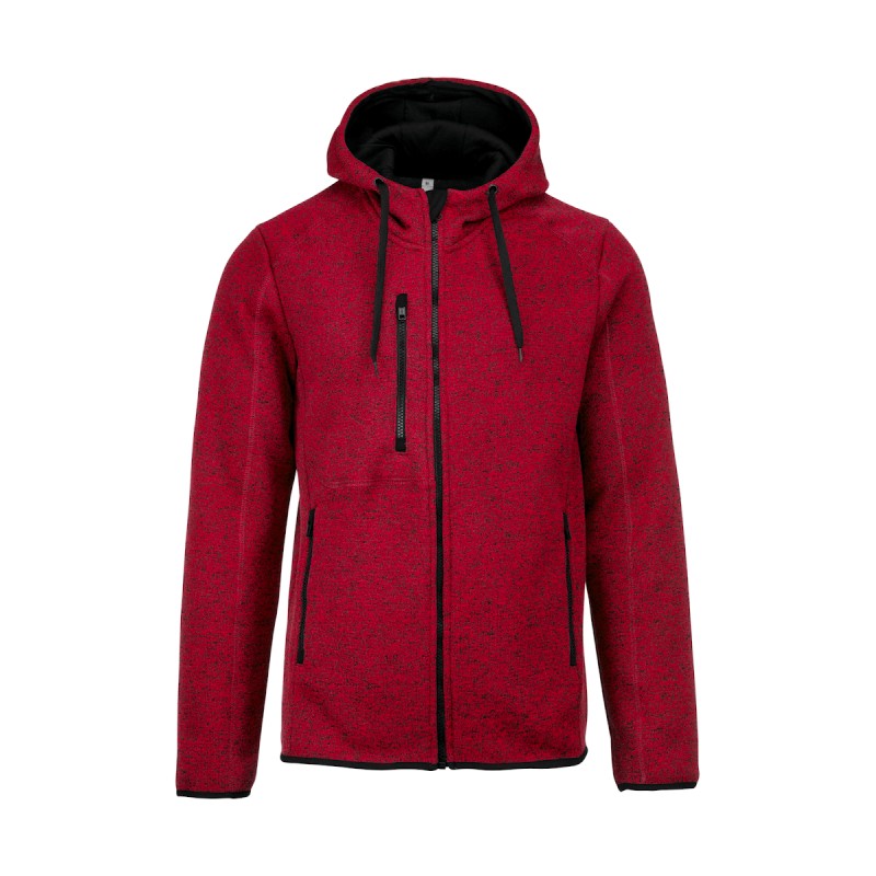 Tricot intérieur gratté 100% polyester. 2 poches devant zippées contrastées et 1 poche poitrine zippée contrastée. Capuche doublure contrastée jersey 100% coton avec cordon de serrage plat contrasté. Bas de manches et de vêtement avec finition biais contrasté élastiqué. Point de recouvrement sur les découpes.