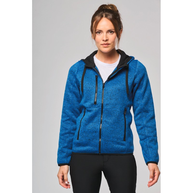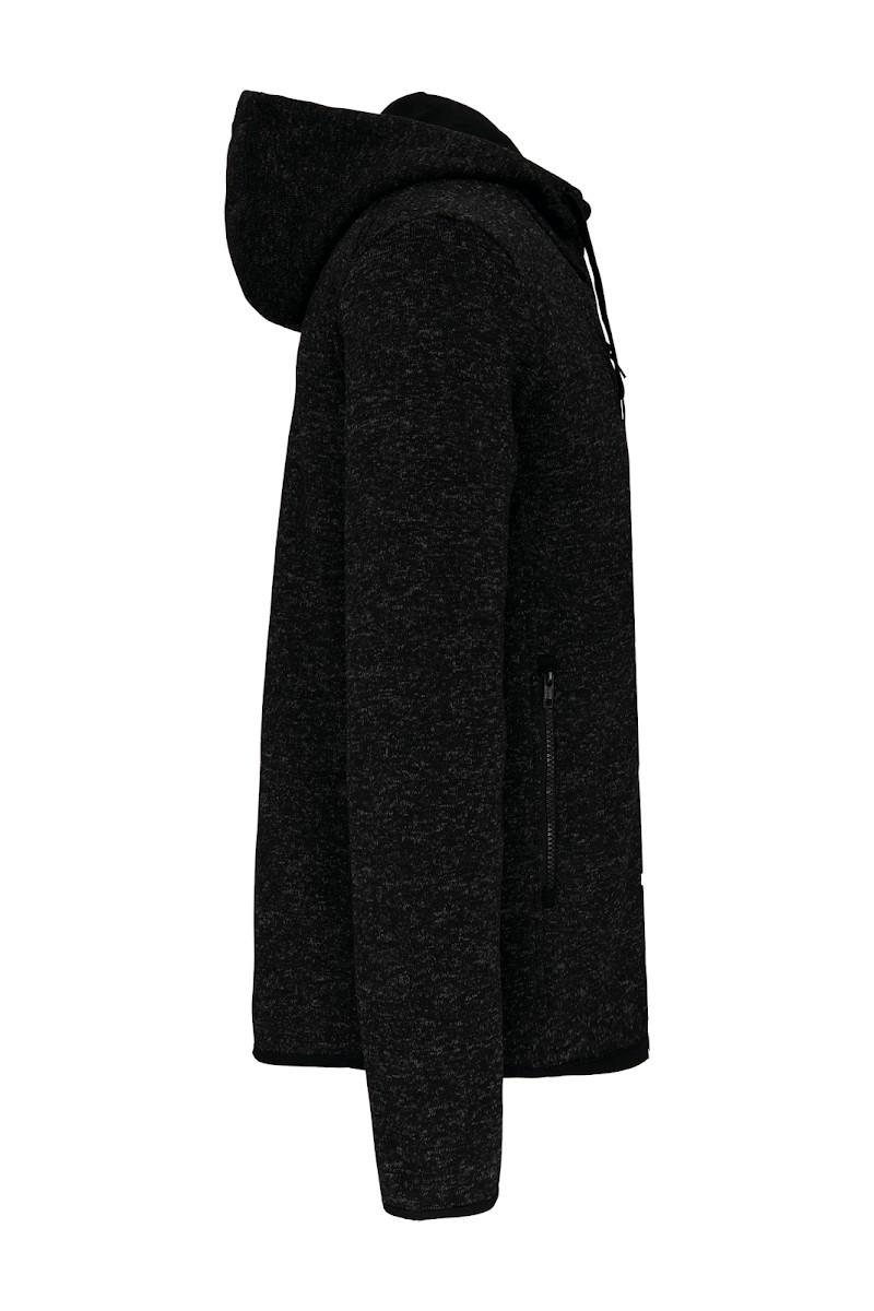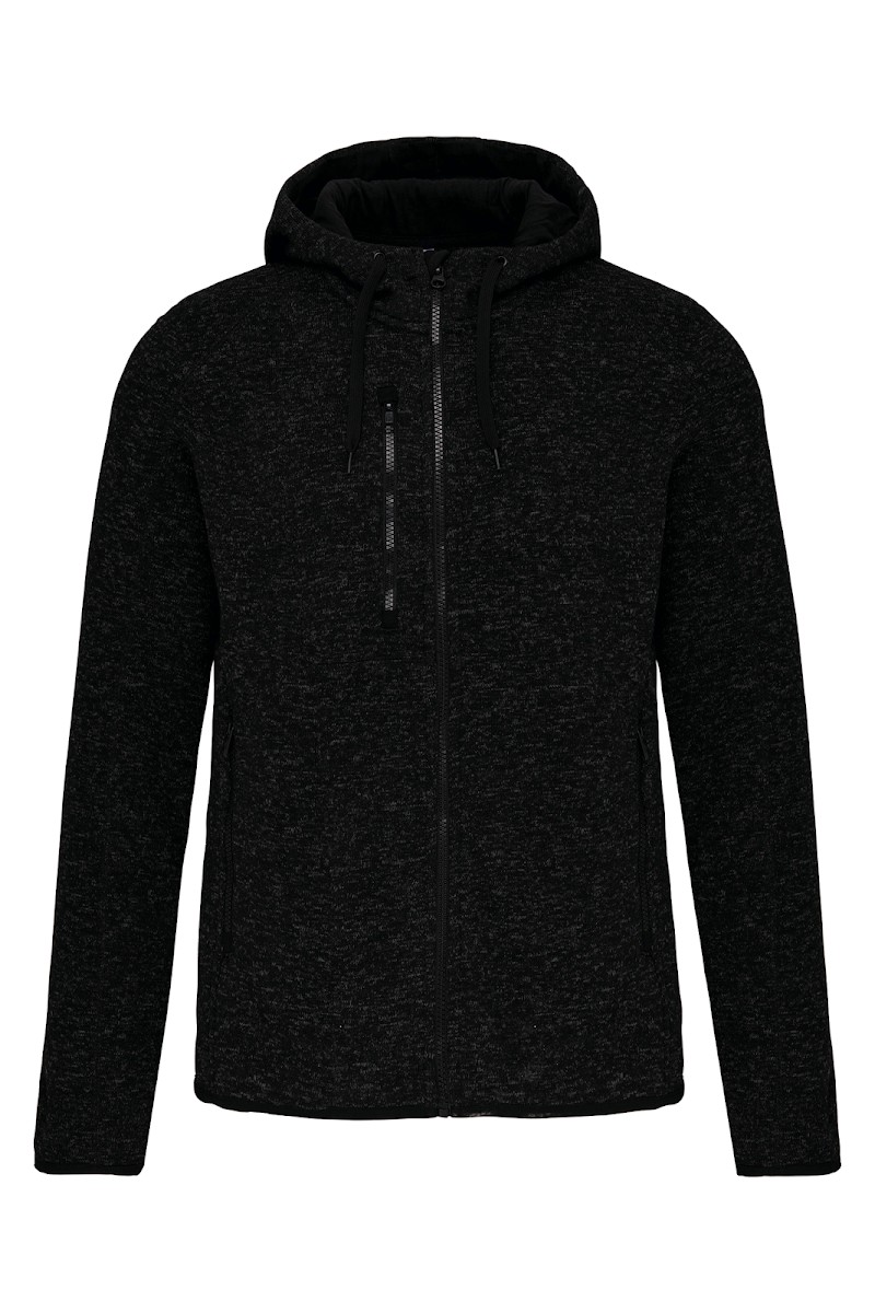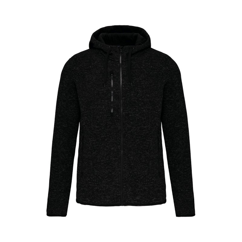Tricot intérieur gratté 100% polyester. 2 poches devant zippées contrastées et 1 poche poitrine zippée contrastée. Capuche doublure contrastée jersey 100% coton avec cordon de serrage plat contrasté. Bas de manches et de vêtement avec finition biais contrasté élastiqué. Point de recouvrement sur les découpes.