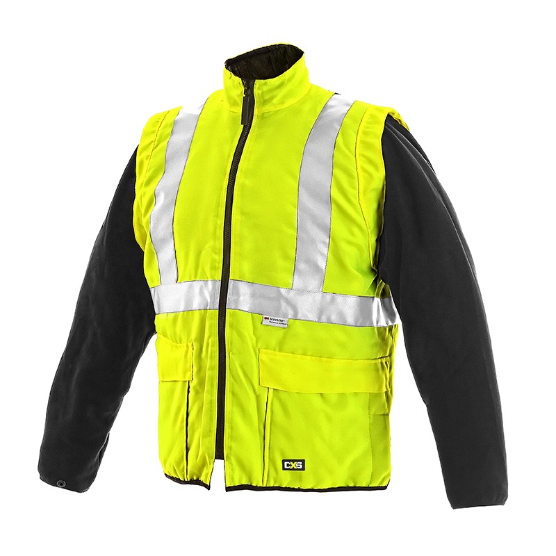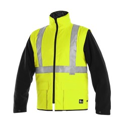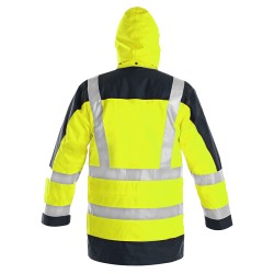 Parka haute visibilité 5 en 1 Homme Bandes réfléchissantes 3M Manches réglables par velcro Col montant avec capuche intégrée Veste intérieure amovible rembourrée en polaire 180 gr/m² : manches amovibles / 2 poches latérales à rabat avec velcro / 1 poche portefeuille intérieure / bandes réfléchissantes 3M Capuche doublée amovible avec cordon de serrage Fermeture zippée avec rabat boutons pression 2 poches latérales avec rabat 2 poches poitrine 2 poches intérieures : téléphone / portefeuille Éléments de contraste Bas du corps et taille ajustables avec cordon de serrage intérieur Coupe-vent et imperméable 100% polyester Doublure 100% polyester 160 gr/m² Tissage Oxford Poids : 180 gr/m² Lavable à 40 °C Maximum 30 lavages recommandés Coutures étanches EN ISO 20471 (S : classe 2 et M-3XL : classe 3) et EN 343+A1 (imperméabilité : classe 3) et respirabilité : classe 1) Haute performance contre les intempéries
