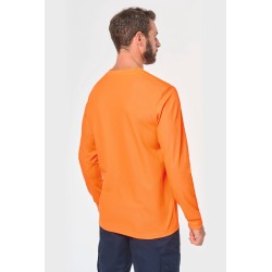 60% coton / 40% polyester recyclé. Coton peigné. Maille piquée interlock. Lavage industriel et/ou lavage domestique 60°C. Coupe confort. Col et bas de manches en bord-côte doublé 1x1. Bande de propreté intérieur col. Renforts intérieurs épaules en twill 65% polyester / 35% coton pour éviter la déformation lors du lavage industriel. Pochette RFID au bas du vêtement sous label. Finition double aiguille bas de manches et de vêtement. EPI Classe II - Normes NF EN ISO 13688:2013 + NF EN ISO 13688/A1:2021 (Vêtements de protection - Exigences générales), NF EN 17353:2020 : Type A (Habillement de protection - Équipement de visualisation améliorée pour des situations à risque modéré - Méthodes d’essai et exigences), NF EN ISO 15797:2018 (Textiles - Méthodes de blanchissage et de finition industriels pour les essais des vêtements de travail) : Blanchissage industriel professionnel - Méthode de lavage programme 8 avec finition en tunnel uniquement. Etiquette de marque tissée.