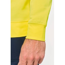77% polyester recyclé / 23% coton peigné. Molleton gratté LSF 3 fils (Low Shrinkage Fleece). Lavage industriel et/ou lavage domestique 60°C. Coupe confort. Col, bas de vêtement et bas de manches en bord-côte 1x1. Bande de propreté intérieur col. Renforts intérieurs épaules en twill 65% polyester/35% coton pour éviter la déformation lors du lavage industriel. Pochette RFID au bas du vêtement sous label. EPI Classe II - Normes NF EN ISO 13688:2013 + NF EN ISO 13688/A1:2021 (Vêtements de protection - Exigences générales), NF EN 17353:2020 : Type A (Habillement de protection - Équipement de visualisation améliorée pour des situations à risque modéré - Méthodes d’essai et exigences), NF EN ISO 15797:2018 (Textiles - Méthodes de blanchissage et de finition industriels pour les essais des vêtements de travail) : Blanchissage industriel professionnel - Méthode de lavage programme 8 avec finition en tunnel uniquement. Etiquette de marque tissée.