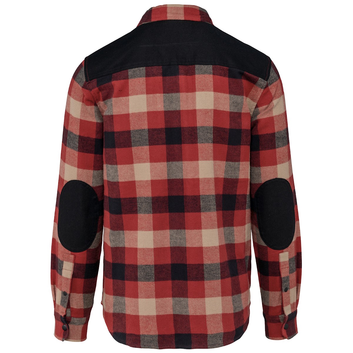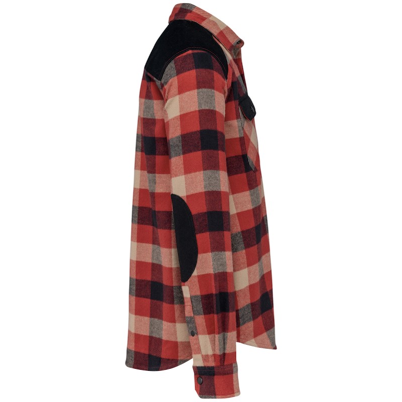 100% coton. Tissu sergé. Coupe Regular. 2 poches poitrine avec rabat contrasté et fermées par boutons pression métal de couleur noire. Fermeture devant et bas de manches par boutons pression métal de couleur noire. Empiècements épaules et coudes de couleur noire pour tous les coloris. Bas de vêtement arrondi. Lien d'accrochage intérieur col en chevron. Etiquette de marque détachable.