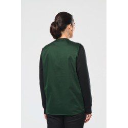 Extérieur : 65% polyester / 35% coton. Coupe ajustée. 2 grandes poches plaquées avant avec bande auto-agrippante + 1 poche plaquée poitrine avec 1 compartiment stylo. Fermeture avec zip plastique ton sur ton. Lien d'accrochage intérieur col. Dos légèrement rallongé. Biais de finition ton sur ton aux emmanchures et en bordure de vêtement. Etiquette nom à l'intérieur du vêtement. Etiquette de marque Tear Away.