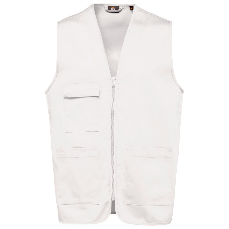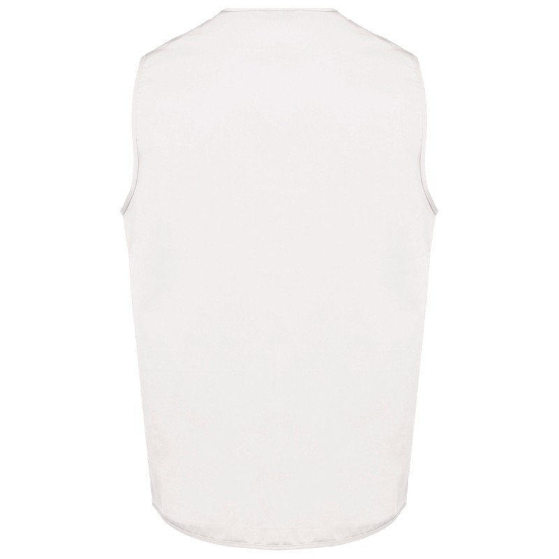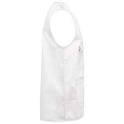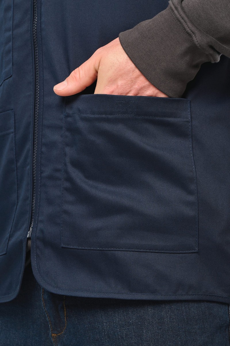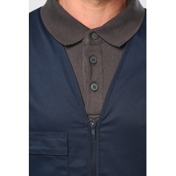 Extérieur : 65% polyester / 35% coton. Coupe ajustée. 2 grandes poches plaquées avant avec bande auto-agrippante + 1 poche plaquée poitrine avec 1 compartiment stylo. Fermeture avec zip plastique ton sur ton. Lien d'accrochage intérieur col. Dos légèrement rallongé. Biais de finition ton sur ton aux emmanchures et en bordure de vêtement. Etiquette nom à l'intérieur du vêtement. Etiquette de marque Tear Away.