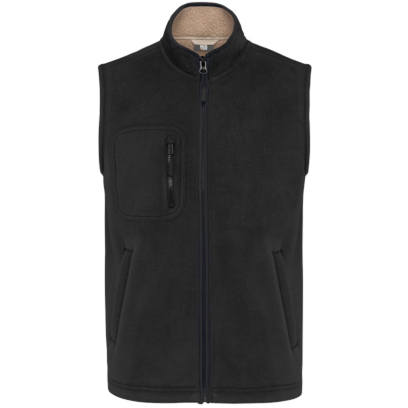 100% polyester. Tissu contrecollé micropolaire et sherpa. Coupe droite. 2 poches zippées passepoilées devant avec tire-zip. 1 poche poitrine arrondie zippée avec tire-zip côté droit au porté avec double surpiqûres ton sur ton. Fermeture zippée avec tire-zip. Intérieur col doublé sherpa et lien d'accrochage. Point de recouvrement au niveau des emmanchures et du bas de vêtement. Etiquette de marque détachable.