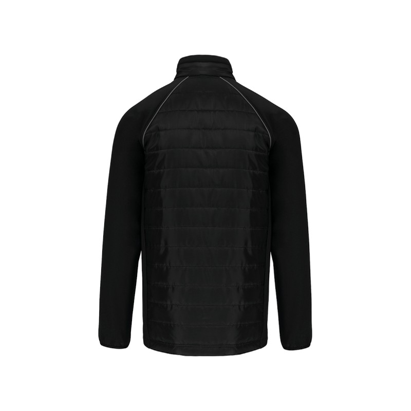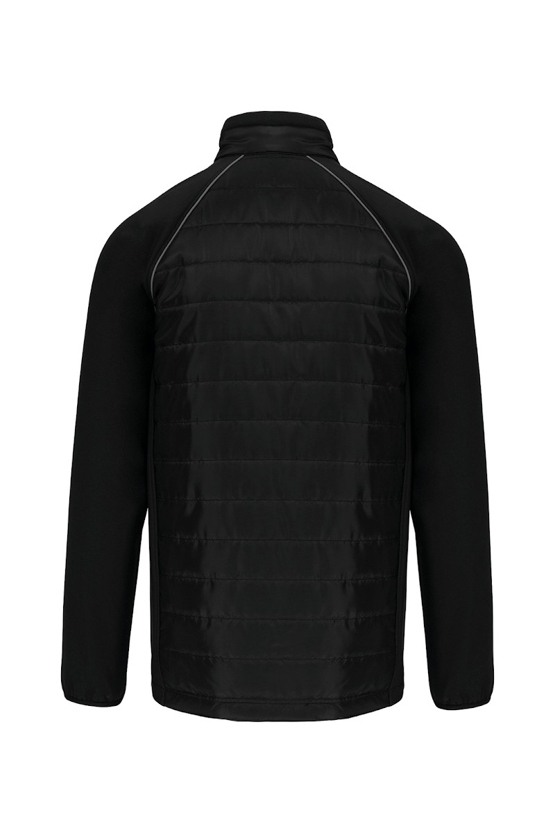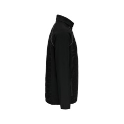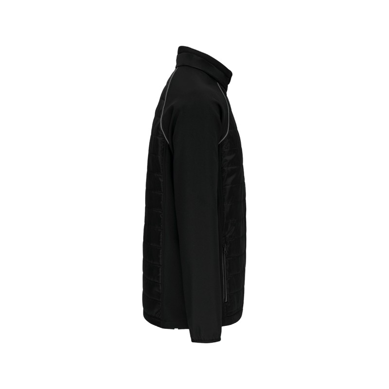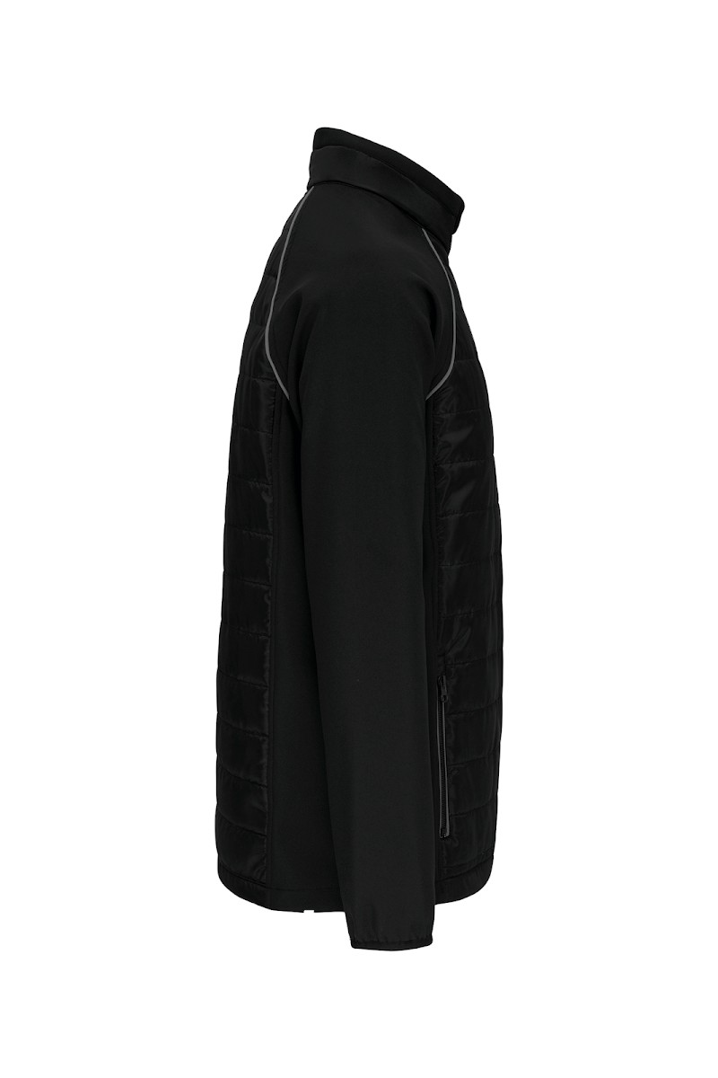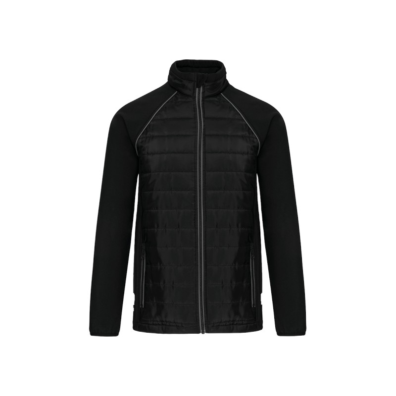 100% polyester. Softshell 2 couches, tissu extensible dans les 4 sens pour plus d'aisance avec couche intérieure polaire pour plus de chaleur sur les manches et les épaules. Devant et dos : 100% polyester 75 g taffetas 230T avec enduction. Tissu traité déperlant. 2 poches avant zippées. 1 étiquette nom fixée intérieur gauche. Passepoil contrasté aux emmanchures et intérieur col. Fermeture zippée avant et poches contrastées. Zip invisible de personnalisation au bas de vêtement. Idéal pour une utilisation quotidienne.