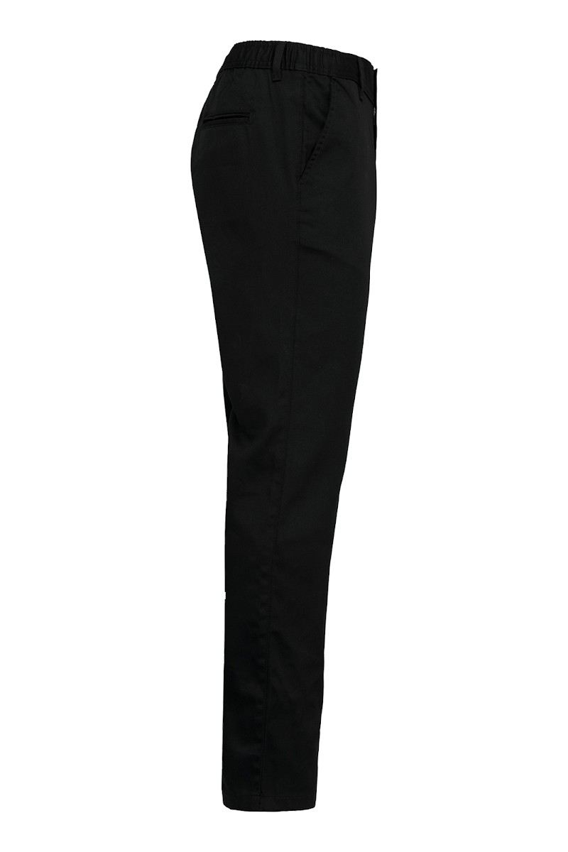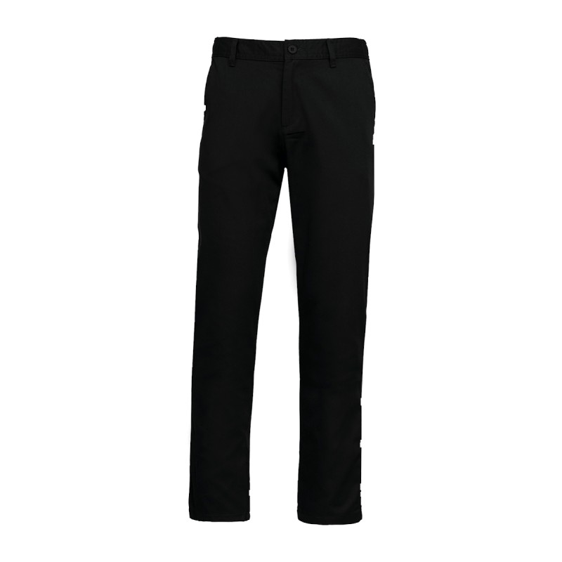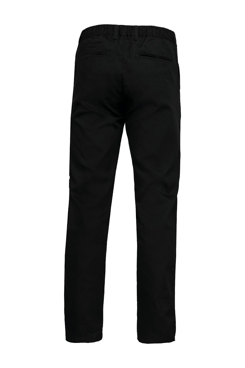 65% polyester / 35% coton. Lavable à 60°C. 2 poches italiennes côtés dont 1 poche monnaie. 2 poches arrière passepoilées avec coutures renforcées. Braguette fermeture à glissière et boutonnée. Ceinture élastiquée pour plus de confort et passants. Lien d'accrochage à l'intérieur taille arrière. Idéal pour une utilisation quotidienne.