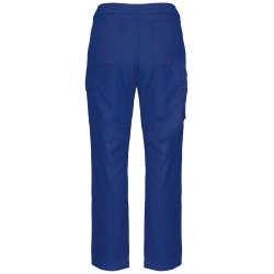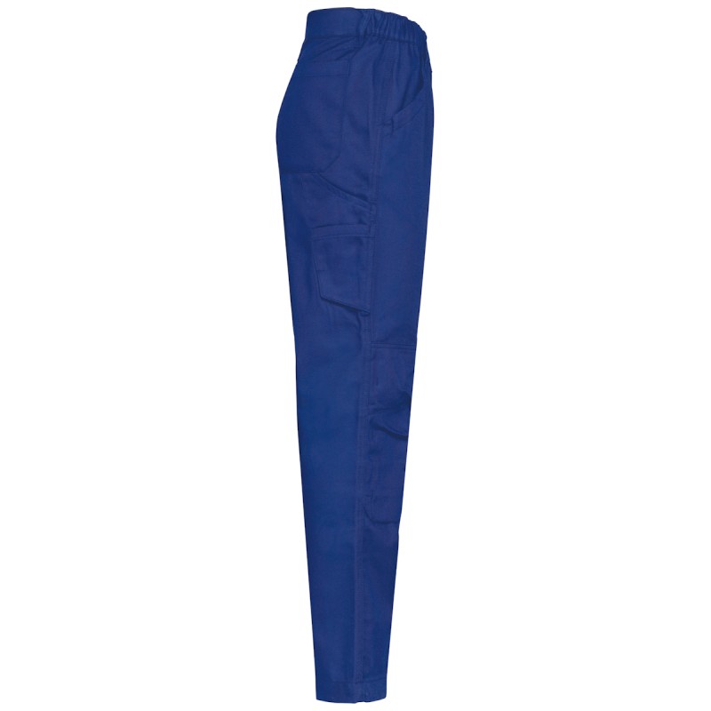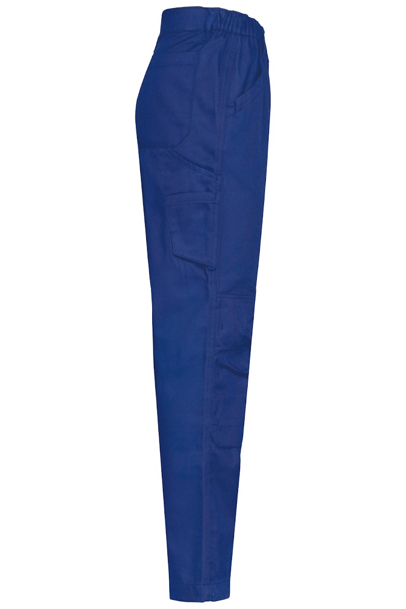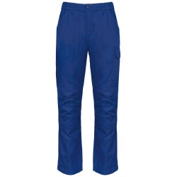 60% coton / 40% polyester. Tissu sergé. Lavage 60°C. Coupe droite. 2 poches devant (sacs de poches en tissu principal). 1 poche à rabat avec fermeture velcro côté gauche au porté, 1 double poche outil ouverte à droite au porté, 2 poches plaquées arrière, 2 poches genouillères ton sur ton avec velcro et rabat intérieur pour maintenir et adapter la genouillère. Ceinture en partie élastiquée avec passants. Fermeture zippée et boutonnée. Bouton plastique. Soufflet à l'entrejambe pour plus de résistance et une parfaite liberté de mouvement. Double piqûres coutures côtés, triple coutures soufflet et fourche devant et dos. Genouillère non fournie. Surpiqûres nervures à l'entrejambe. Ourlet bas de jambe. Etiquette de marque détachable.