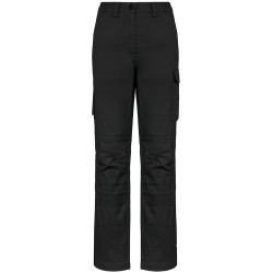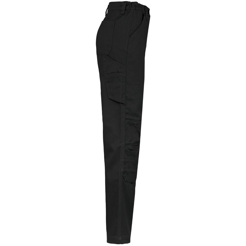 60% coton / 40% polyester. Tissu sergé. Lavage 60°C. Coupe droite. 2 poches devant (sacs de poches en tissu principal). 1 poche à rabat avec fermeture velcro côté gauche au porté, 1 double poche outil ouverte à droite au porté, 2 poches plaquées arrière, 2 poches genouillères ton sur ton avec velcro et rabat intérieur pour maintenir et adapter la genouillère. Ceinture en partie élastiquée avec passants. Fermeture zippée et boutonnée. Bouton plastique. Soufflet à l'entrejambe pour plus de résistance et une parfaite liberté de mouvement. Double piqûres coutures côtés, triple coutures soufflet et fourche devant et dos. Genouillère non fournie. Surpiqûres nervures à l'entrejambe. Ourlet bas de jambe. Etiquette de marque détachable.