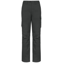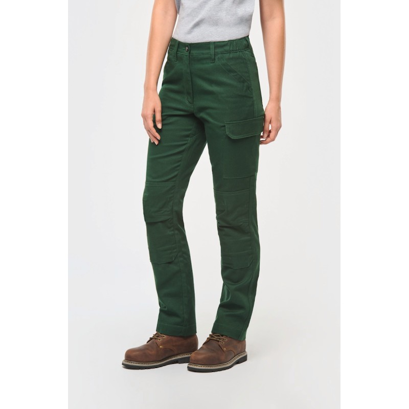 60% coton / 40% polyester. Tissu sergé. Lavage 60°C. Coupe droite. 2 poches devant (sacs de poches en tissu principal). 1 poche à rabat avec fermeture velcro côté gauche au porté, 1 double poche outil ouverte à droite au porté, 2 poches plaquées arrière, 2 poches genouillères ton sur ton avec velcro et rabat intérieur pour maintenir et adapter la genouillère. Ceinture en partie élastiquée avec passants. Fermeture zippée et boutonnée. Bouton plastique. Soufflet à l'entrejambe pour plus de résistance et une parfaite liberté de mouvement. Double piqûres coutures côtés, triple coutures soufflet et fourche devant et dos. Genouillère non fournie. Surpiqûres nervures à l'entrejambe. Ourlet bas de jambe. Etiquette de marque détachable.