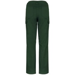 60% coton / 40% polyester. Tissu sergé. Lavage 60°C. Coupe droite. 2 poches devant (sacs de poches en tissu principal). 1 poche à rabat avec fermeture velcro côté gauche au porté, 1 double poche outil ouverte à droite au porté, 2 poches plaquées arrière, 2 poches genouillères ton sur ton avec velcro et rabat intérieur pour maintenir et adapter la genouillère. Ceinture en partie élastiquée avec passants. Fermeture zippée et boutonnée. Bouton plastique. Soufflet à l'entrejambe pour plus de résistance et une parfaite liberté de mouvement. Double piqûres coutures côtés, triple coutures soufflet et fourche devant et dos. Genouillère non fournie. Surpiqûres nervures à l'entrejambe. Ourlet bas de jambe. Etiquette de marque détachable.