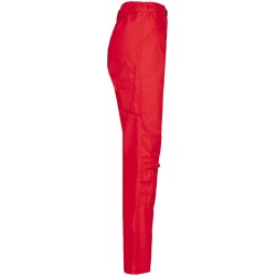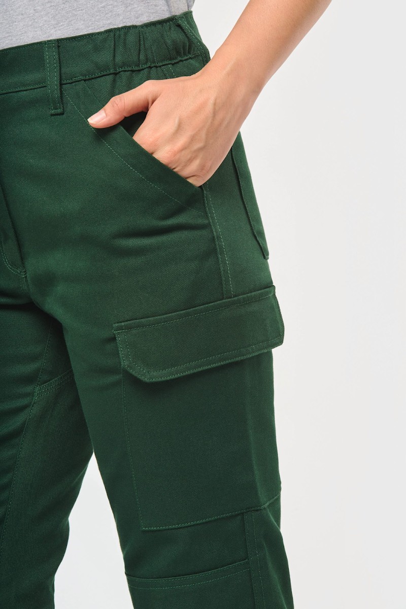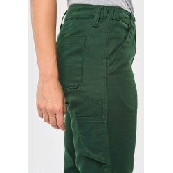 60% coton / 40% polyester. Tissu sergé. Lavage 60°C. Coupe droite. 2 poches devant (sacs de poches en tissu principal). 1 poche à rabat avec fermeture velcro côté gauche au porté, 1 double poche outil ouverte à droite au porté, 2 poches plaquées arrière, 2 poches genouillères ton sur ton avec velcro et rabat intérieur pour maintenir et adapter la genouillère. Ceinture en partie élastiquée avec passants. Fermeture zippée et boutonnée. Bouton plastique. Soufflet à l'entrejambe pour plus de résistance et une parfaite liberté de mouvement. Double piqûres coutures côtés, triple coutures soufflet et fourche devant et dos. Genouillère non fournie. Surpiqûres nervures à l'entrejambe. Ourlet bas de jambe. Etiquette de marque détachable.