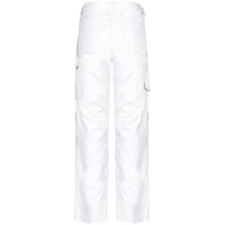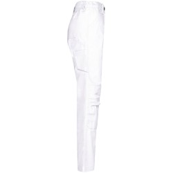 60% coton / 40% polyester. Tissu sergé. Lavage 60°C. Coupe droite. 2 poches devant (sacs de poches en tissu principal). 1 poche à rabat avec fermeture velcro côté gauche au porté, 1 double poche outil ouverte à droite au porté, 2 poches plaquées arrière, 2 poches genouillères ton sur ton avec velcro et rabat intérieur pour maintenir et adapter la genouillère. Ceinture en partie élastiquée avec passants. Fermeture zippée et boutonnée. Bouton plastique. Soufflet à l'entrejambe pour plus de résistance et une parfaite liberté de mouvement. Double piqûres coutures côtés, triple coutures soufflet et fourche devant et dos. Genouillère non fournie. Surpiqûres nervures à l'entrejambe. Ourlet bas de jambe. Etiquette de marque détachable.