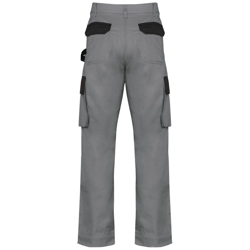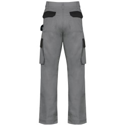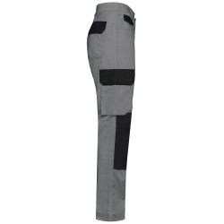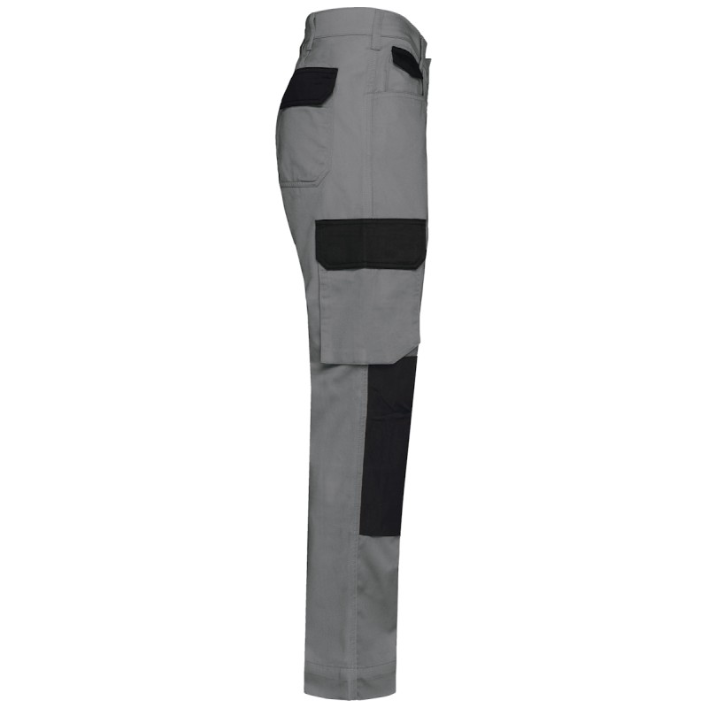 65% polyester / 35% coton. Lavage à 60°C. Coupe droite. 2 poches devant (sacs de poches en tissu principal) dont 1 avec petite poche intérieure fermée avec rabat contrasté (sauf pour coloris noir). 2 poches cargo volantes à soufflet et rabat contrasté (sauf pour coloris noir) avec fermeture velcro dont une à 2 compartiments et emplacements outils. 2 poches arrière avec rabat et fermeture velcro, 1 porte-marteau à gauche au porté. 2 poches genouillères Cordura® contrastées (couleur noire pour toutes les couleurs) avec velcro et rabat intérieur pour maintenir et adapter la genouillère. Ceinture avec passants. Anneau en plastique fixé sur la ceinture à l'avant gauche au porté. Fermeture zippée et boutonnée (bouton métal recouvert de plastique). Double piqûres coutures côtés, triple coutures fourche devant et dos. Genouillère non fournie. Surpiqûres nervures à l'entrejambe. Entrejambe 80 et ourlet de 5 cm. Etiquette de marque détachable.