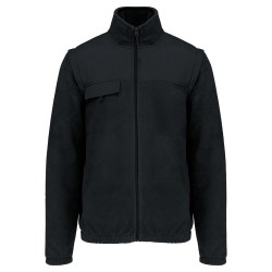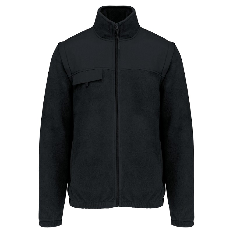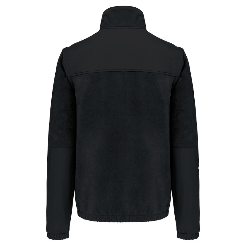 100% polyester. Extérieur : polaire 100% polyester 400 g/m². Renforts 100% polyester taslon avec enduction acrylique. Doublure intérieure manches polyester 210T. Produit 2 en 1. 2 poches avant zippées et 1 poche poitrine avec rabat et bande auto-agrippante. Larges protections ton sur ton aux épaules et avant-bras. Personnalisation facilitée avant et dos. Manches amovibles doublées polyester pour plus de confort. Poignets et bas de vêtement élastiqués.
