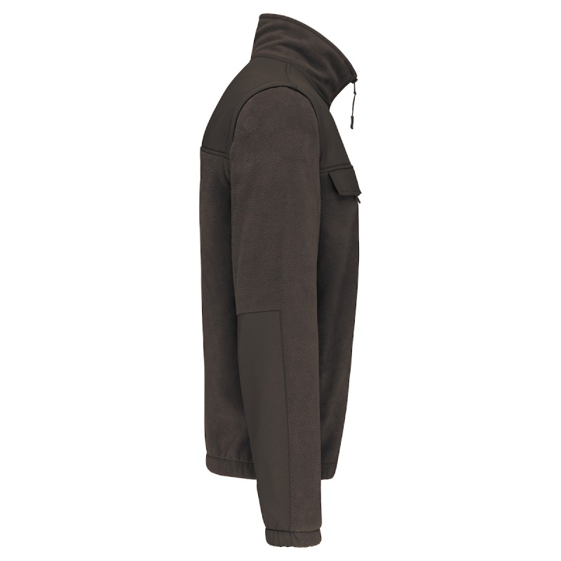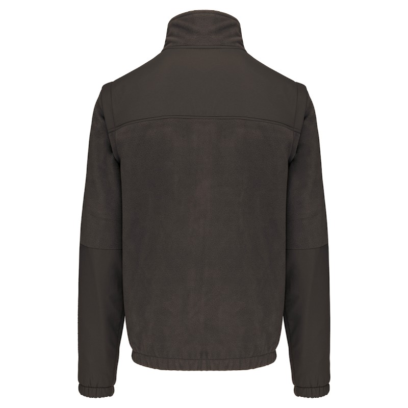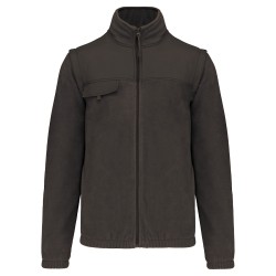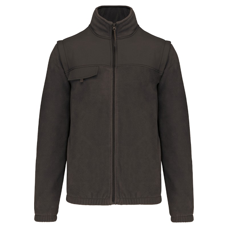 100% polyester. Extérieur : polaire 100% polyester 400 g/m². Renforts 100% polyester taslon avec enduction acrylique. Doublure intérieure manches polyester 210T. Produit 2 en 1. 2 poches avant zippées et 1 poche poitrine avec rabat et bande auto-agrippante. Larges protections ton sur ton aux épaules et avant-bras. Personnalisation facilitée avant et dos. Manches amovibles doublées polyester pour plus de confort. Poignets et bas de vêtement élastiqués.